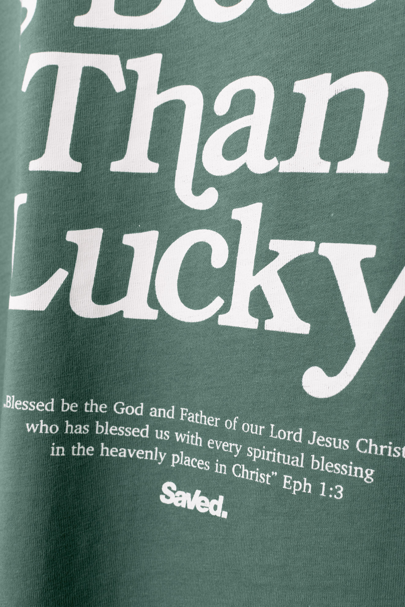 T-shirt z chrześcijańskim motywem „Blessed is Better than Lucky” jest nawiązaniem do słów Apostoła Pawła z Listu do Efezjan 1:3  „Błogosławiony niech będzie Bóg i Ojciec naszego Pana Jezusa Chrystusa, który pobłogosławił nas wszelkim duchowym błogosławieństwem w miejscach niebiańskich w Chrystusie.” Koszulka jest zrobiona z najlepszej jakości bawełny czesanej ring-spun, dbając o każdy szczegóły nadruk wykonaliśmy wytrzymałą farbą wodną tak aby nasz produkt służyły Tobie jak najdłużej. To co sami cenimy w odzieży to fakt aby t-shirt był wygodny i cieszył Ciebie za każdym razem gdy go zakładasz.