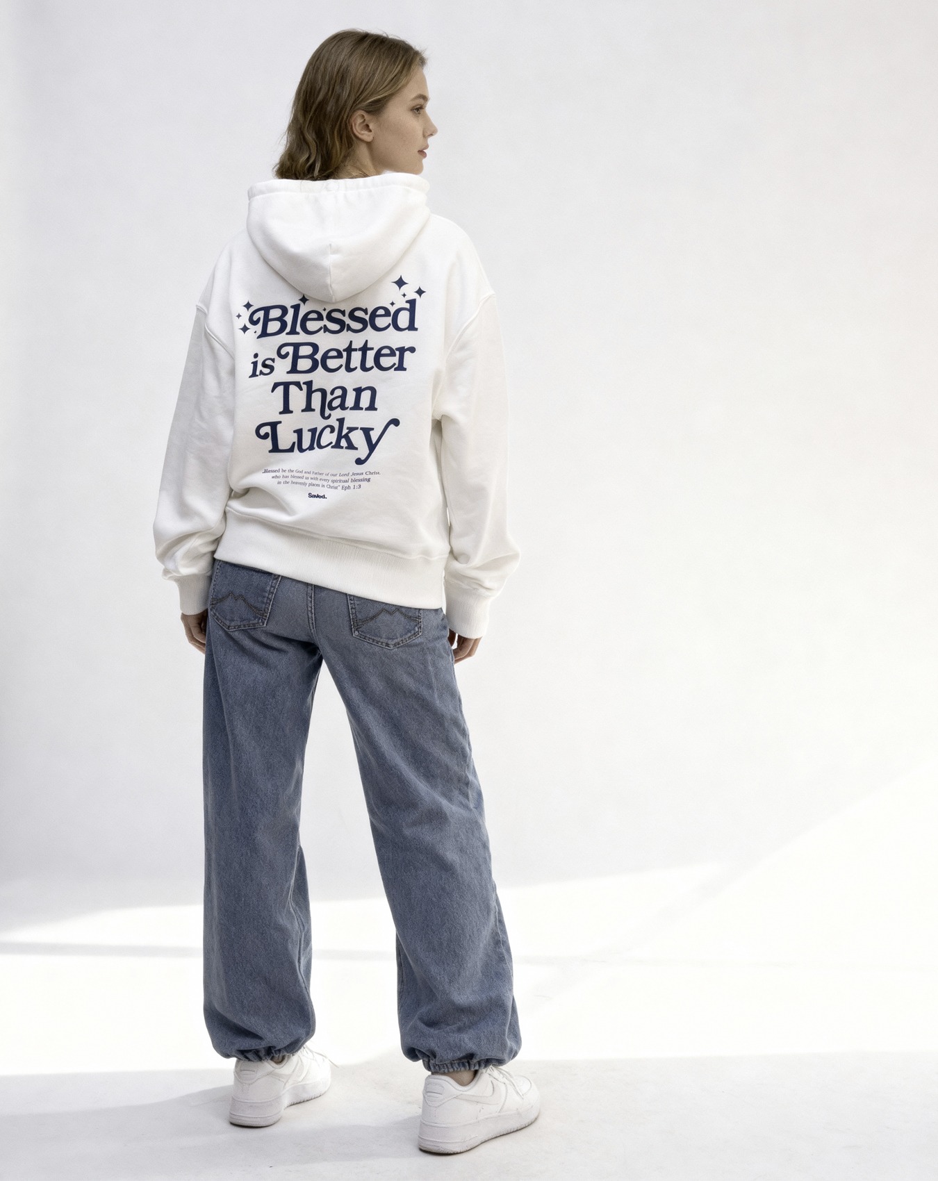 Rewelacyjna bluza zrobiona z najlepszej jakości bawełny ring-spun, używamy organicznej bawełny czesankowej tak aby nasze produkty służyły Tobie jak najdłużej. Bluza jest wygodna ma luźny krój dla nas jest ważne aby nasza odzież cieszyła Ciebie za każdym razem ją zakładasz. Chrześcijański nadruk z tyłu bluzy jest odniesienim do faktu, że Bóg Ojciec pobłogosławił nas wszelkim duchowym błogosławieństwem w miejscach niebiańskich w Chrystusie i to obietnica dla każdy kto stał się uczniem Boga Jezusa.