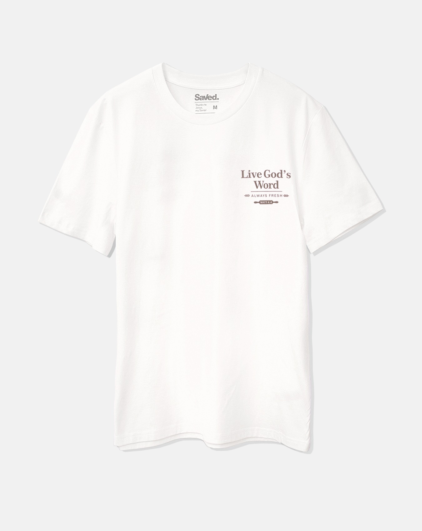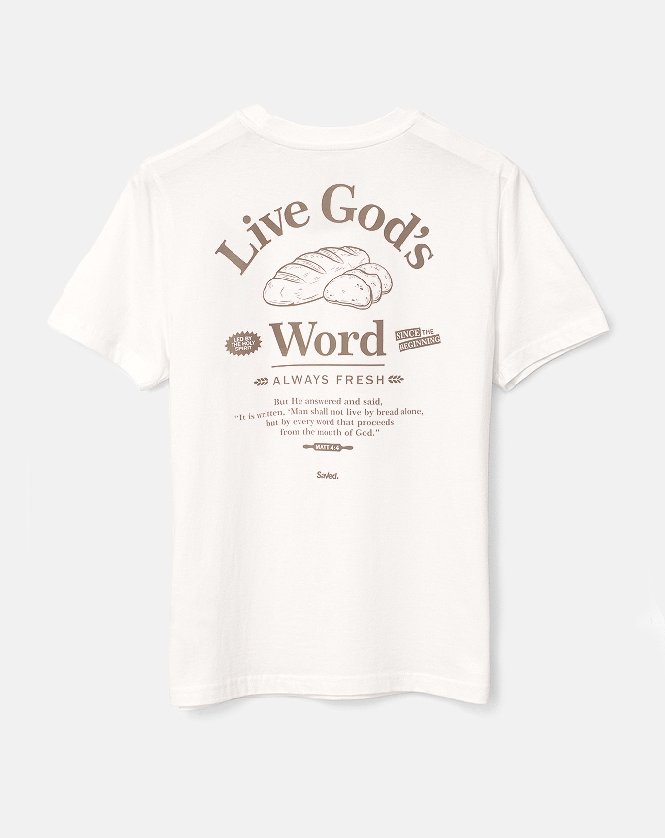 T-shirt chrześcijański Live God’s Word. Pan Jezus Chrystus będąc kuszonym na pustyni tak odpowiedział diabłu Ew.Mateusza 4:4 „A on odpowiedział: Jest napisane: Nie samym chlebem będzie żył człowiek, ale każdym słowem pochodzącym z ust Boga.” List do Rzymian 10:17 „Wiara więc jest ze słuchania, a słuchanie – przez słowo Boże.”  Koszulka jest zrobiona z najlepszej jakości organicznej bawełny czesanej metodą ring-spun, dbając o każdy szczegóły nadruk wykonaliśmy wytrzymałą farbą wodną tak aby nasza odzież służyła Tobie jak najdłużej, a t-shirt był wygodny i cieszył Ciebie za każdym razem gdy go ubierzesz.